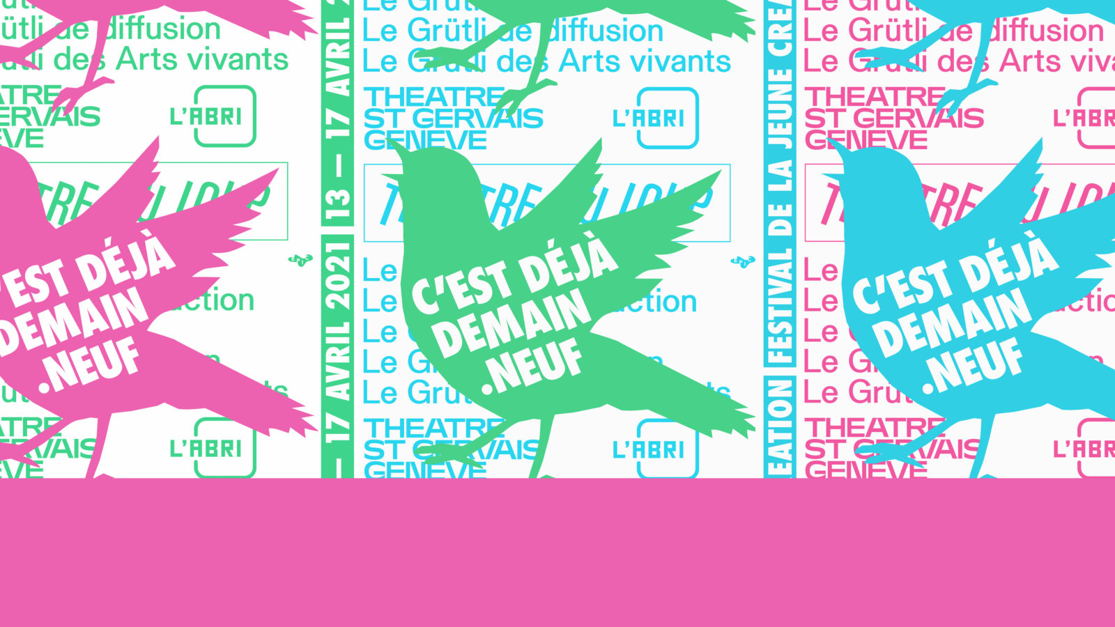 L’émoi des premières fois ! Le festival C’est déjà demain a pour vocation de présenter au public les premiers projets des nouveaux.elles créateurs.trices romand.e.s. Le Théâtre du Loup, le Théâtre Saint-Gervais Genève, L’Abri et Le Grütli – Centre de production et de diffusion des Arts vivants sont heureux d’organiser ensemble la prochaine édition. Maquettes, coups d’essai, premiers et deuxièmes projets, spectacles de fin d’études de Master…