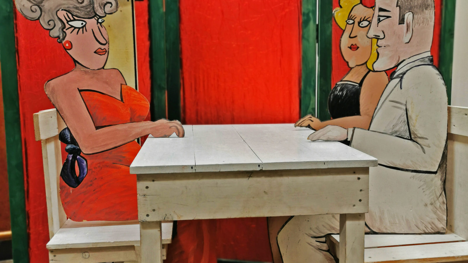 Accessoires faits main, costumes, masques, tableaux et décors peints (Philippe Grosclaude, Gérald Poussin, Gilbert Mazliah, Eric Jeanmonod…) mobilier de toutes sortes, bidules improbables et machins bizarres issus de spectacles mythiques du Loup : Zazie dans le métro, Recherche Eléphants, Caraïbes, Emois, émois, émois, La triste histoire de Marguerite, et bien d’autres.