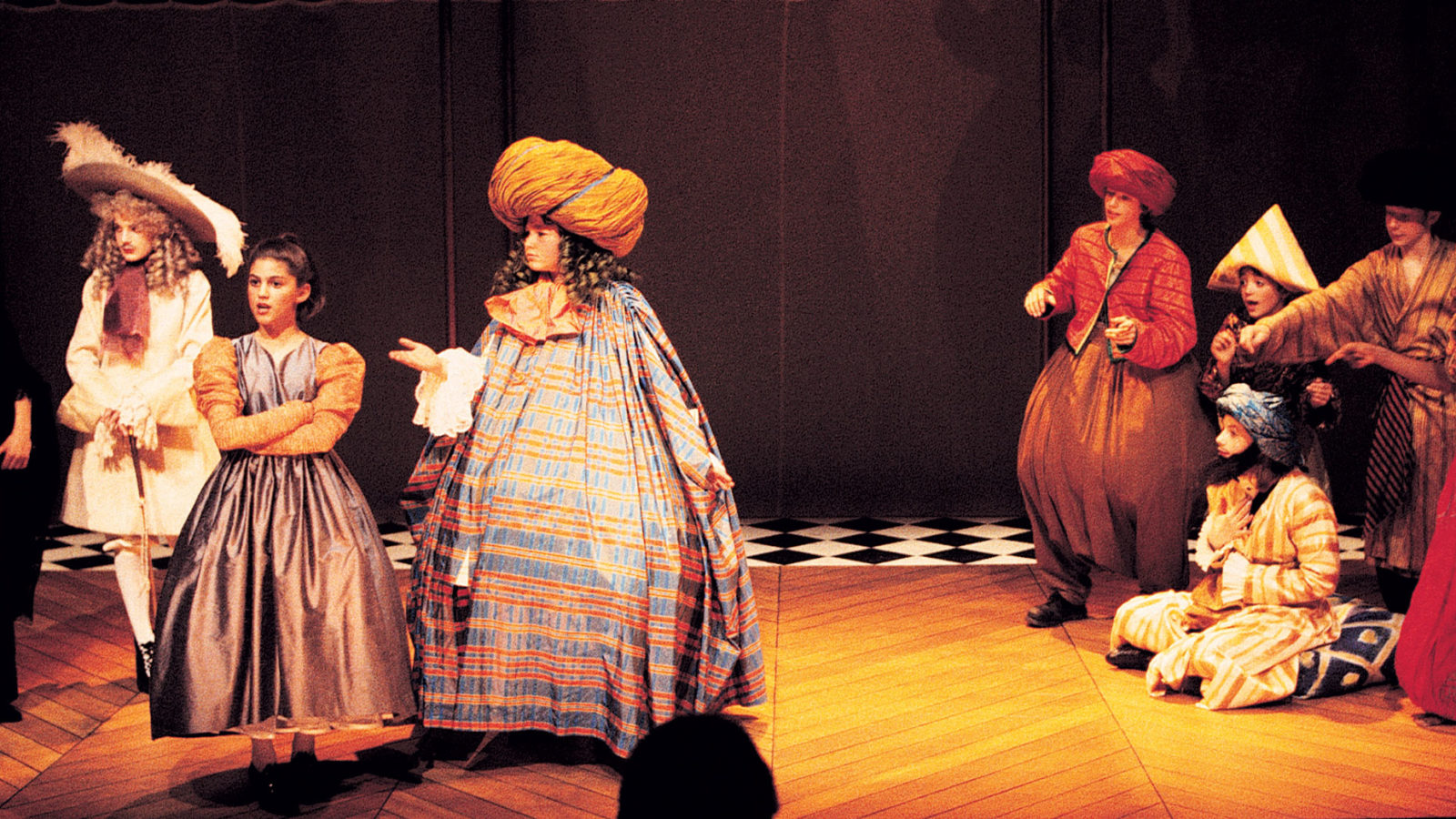 Le Théâtre du Loup a organisé pour les plus grands enfants de ses ateliers un travail sur le texte et l’improvisation autour de Molière. Suite à leur enthousiasme, nous leur avons proposé à tous, quelques mois plus tard, de monter une version à peine raccourcie du Bourgeois gentilhomme, dans laquelle ils joueraient tous les rôles. Ceci à condition d’y consacrer trois mois de répétition, à raison de deux jours par semaine. C’est peu pour monter une vraie pièce, c’est beaucoup pour des enfants qui devront y mettre le meilleur de leur temps libre.