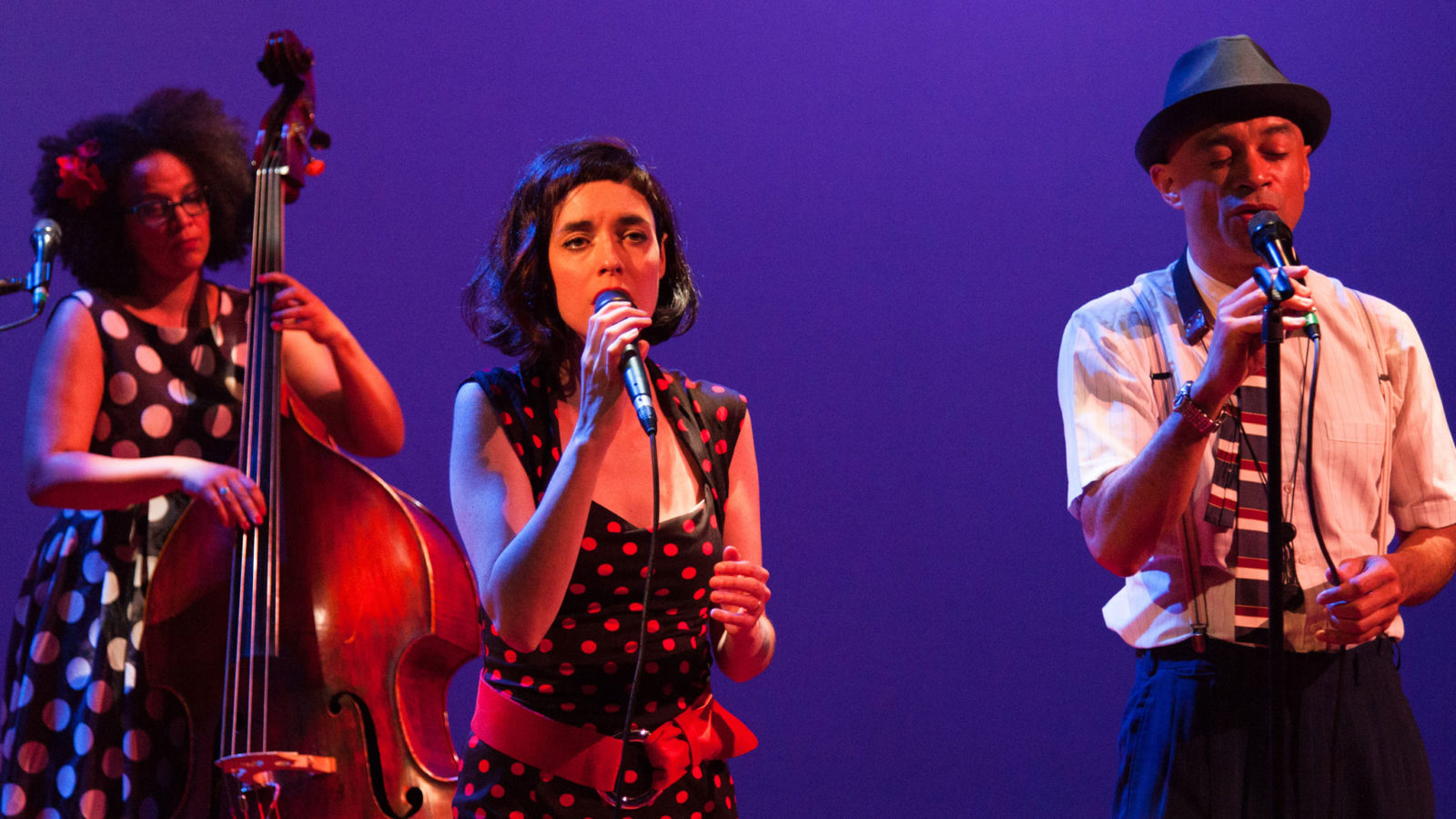 Sous son couvre-chef de dandy, Ernie Odoom alterne en crooner l’anche de sax et le velouté du timbre – ses inflexions écossaises achevant d’en faire le snob de rigueur (ou son versant punk). Jocelyne Rudasigwa sautille derrière sa contrebasse quand elle n’opte pas pour le ukulele ou les fioritures de choriste. Percussionniste à tout faire, Sylvain Fournier glisse de la batterie à la scie musicale quand il n’entonne pas un déserteur aussi émouvant que dépouillé.